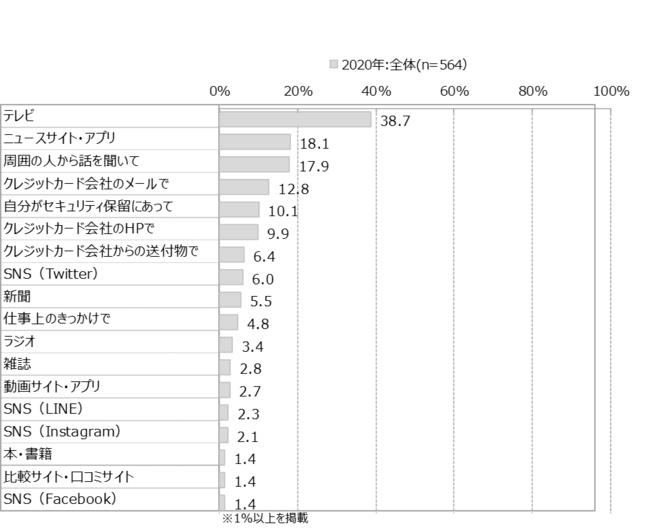 認知経路上位は、1位テレビ、2位ニュースサイト、3位周囲の人の話、4位カード会社のメール。