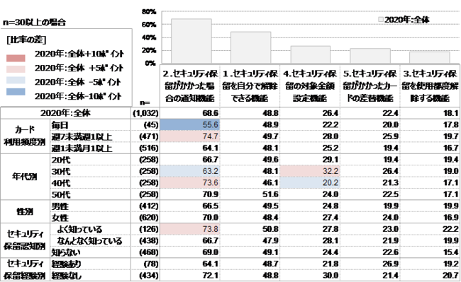 さらに、セキュリティ保留に求める機能として「保留の通知(69%)」「自身で解除できる(49%)」のニーズが高く、利用者はより「速やかな保留の通知と解除」を求めていることが分かりました。